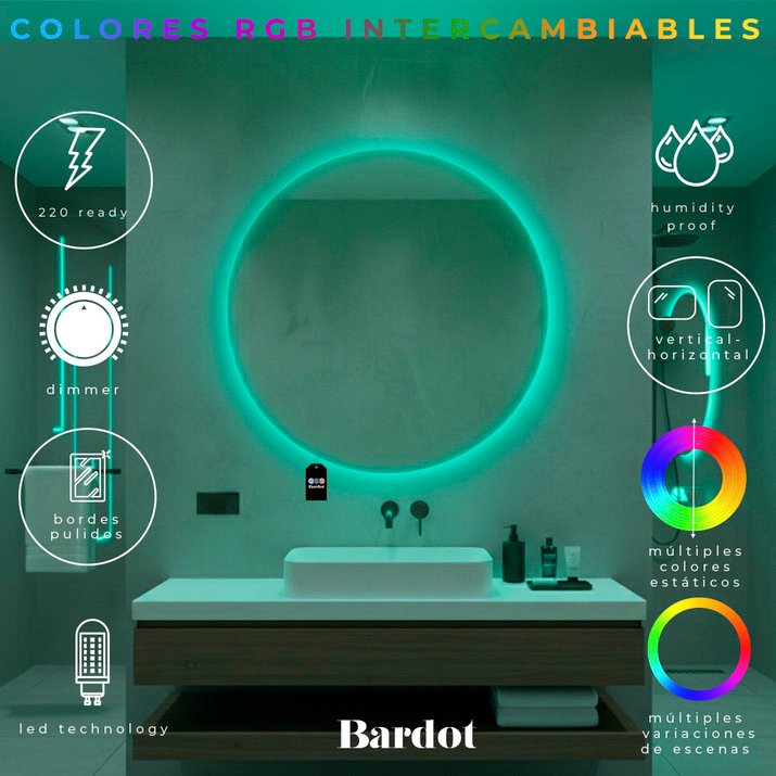 ESPEJO REDONDO LED RGB APP 80 Cm
