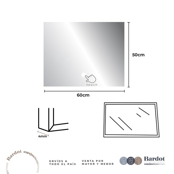 ESPEJO TOUCH LED RECTANGULAR 50x60 Cm
